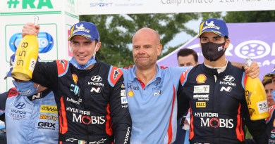 Ogier inherited his podium position when Neuville wrecked his i20’s rear-right wheel on Prangli. Neuville ran wide on a fast left-hander and found something solid in the Estonian undergrowth. The Belgian did complete the stage, losing over a minute, but the damage was judged too severe to complete the remaining four stages.