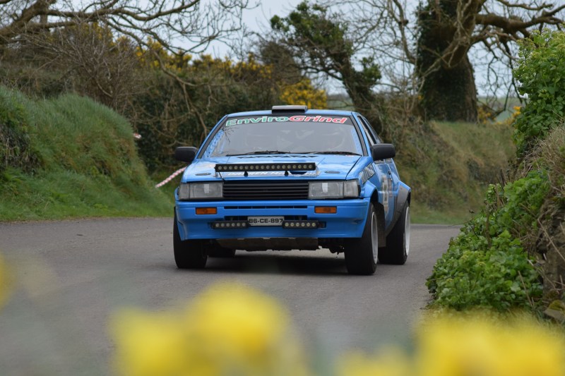 Eves started the fastest of the four on February’s Galway International Rally, winning three of the first four stages. However, Eves’ rally came to an unfortunate end on Galway’s fifth stage, Foolagh, when he misjudged a braking point and slid his Toyota Corolla through an entrance into a field.