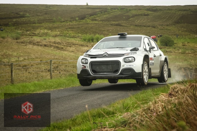 Irish Tarmac Rally Championship contender Jonny Greer was Henry’s closest rival on Stage 1. Although he was just grateful to make the end of the stage after bottoming his Citroen C3 Rally2 out over a jump before gathering it up sideways down the road.