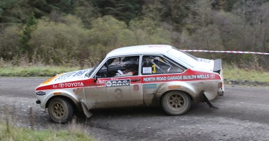 John Bradley mans the second-highest seeded Ford Escort, sixth on the road, ahead of Gareth Black’s Bath Shack backed Starlet.