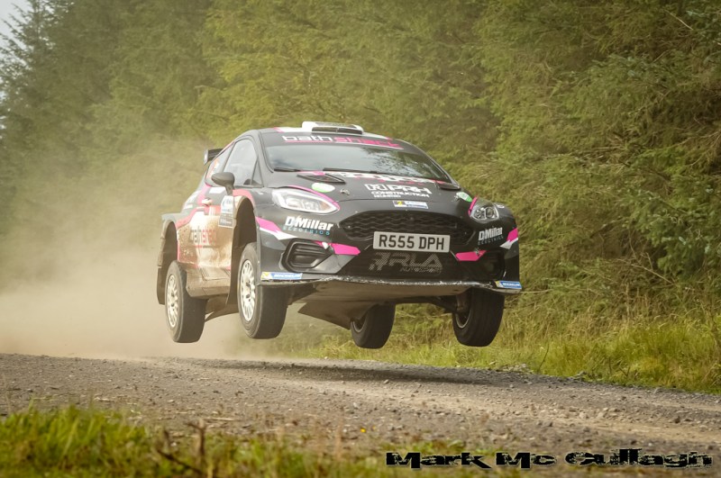 Garry Jennings rolled out of tenth position on the same Lough Braden test. He completed the stage in his Fiesta R5, returning to service in time to repair the car and complete the rest of the rally.