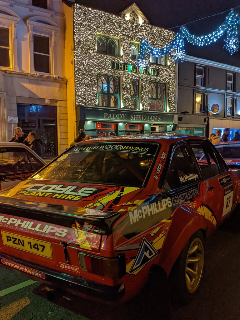Killarney knows how to do a ceremonial start. With the bonus Christmas lights, Killarney Historic’s Friday evening start ramp is rally atmosphere at its very best.
