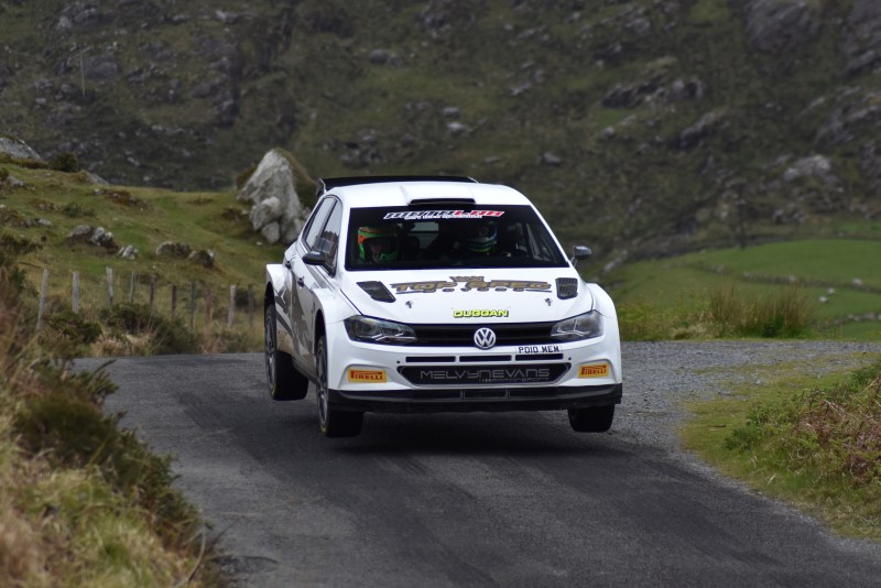 Galway International Rally winners, Meirion Evans and Jonathan Jackson, set the second-fastest time through Healy Pass but an accident on Cod’s Head put their Polo R5 out of the running.