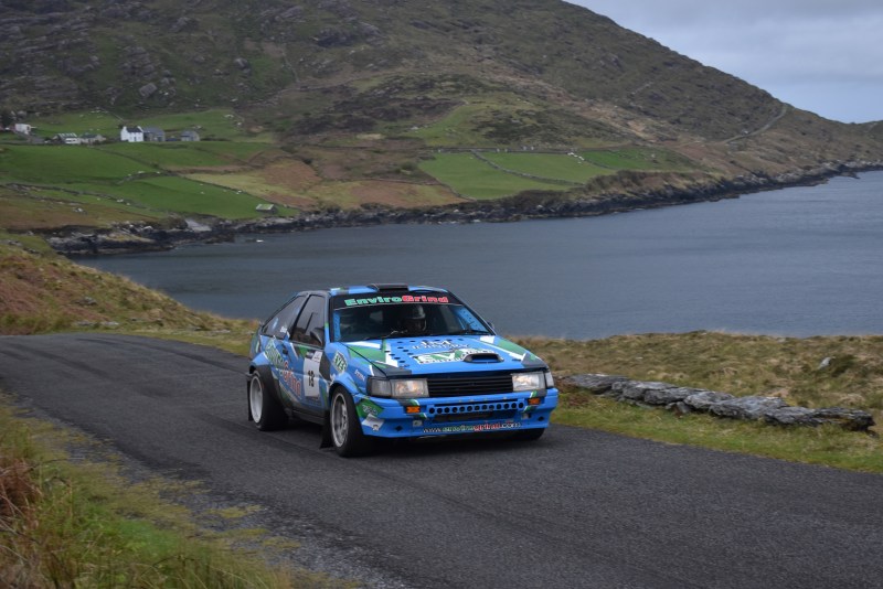 The relentless Ardgroom test took its toll on the Rally2 crews as Gareth MacHale, Aaron MacHale, and Brendan Cumiskey all retired on the Beara peninsula.
